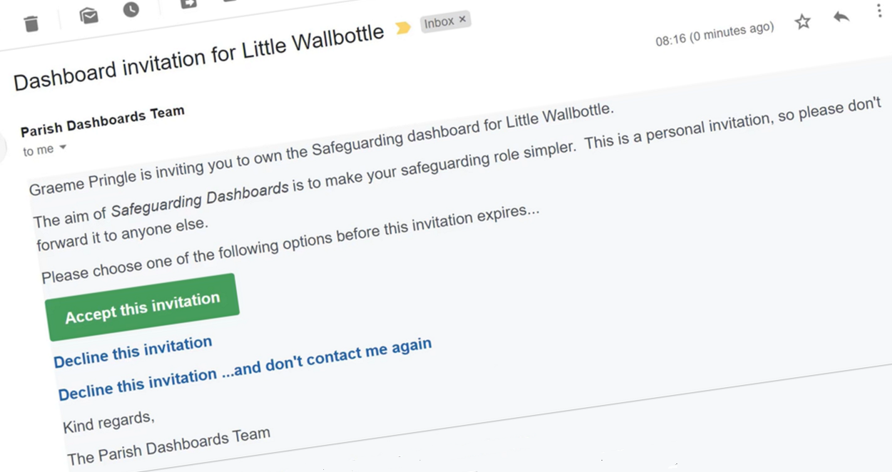Your diocesan safeguarding team will invite one or two people to be the owner of a dashboard. Once the owner has registered, they can update the dashboard and also invite others to be viewers of the dashboard.